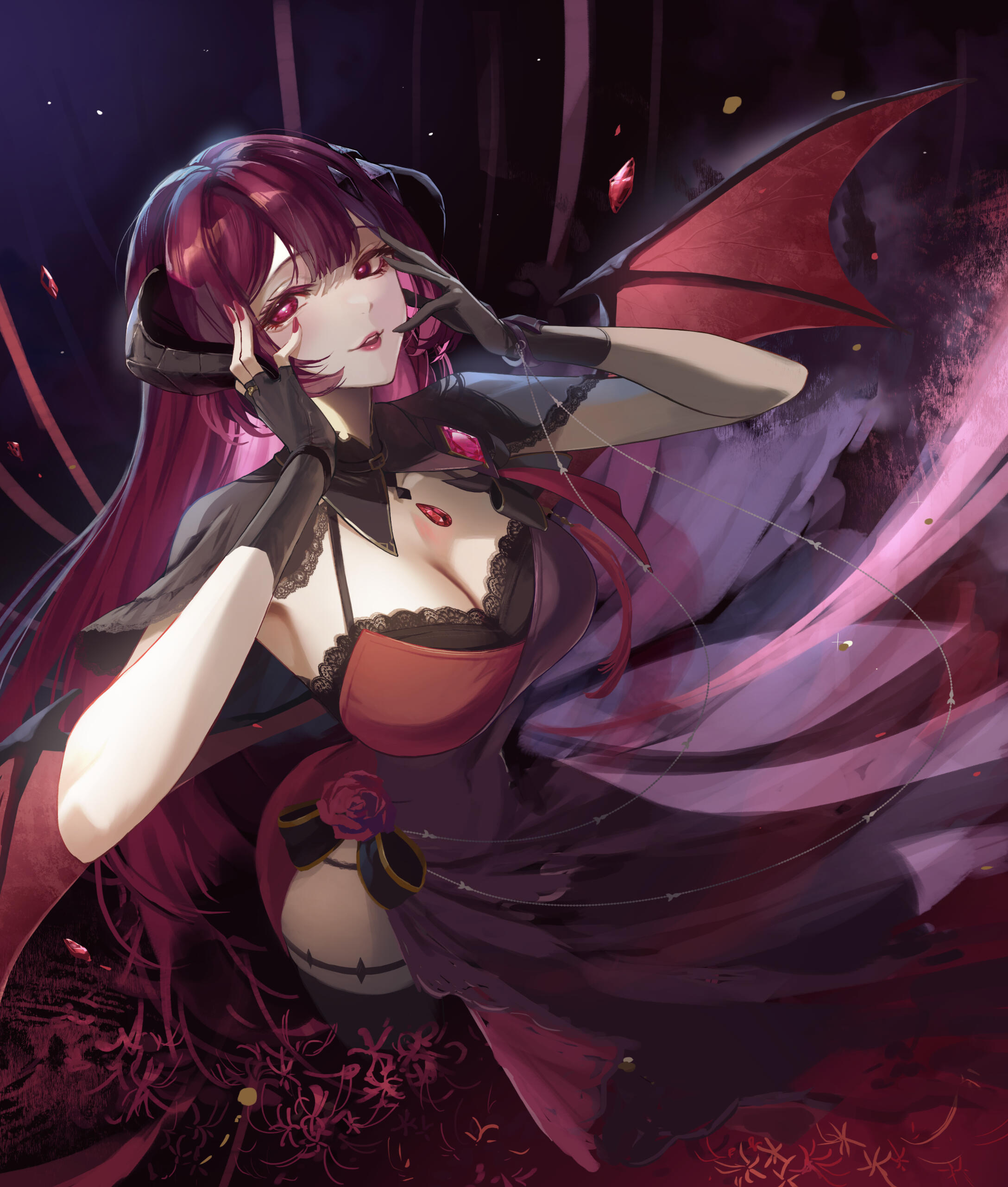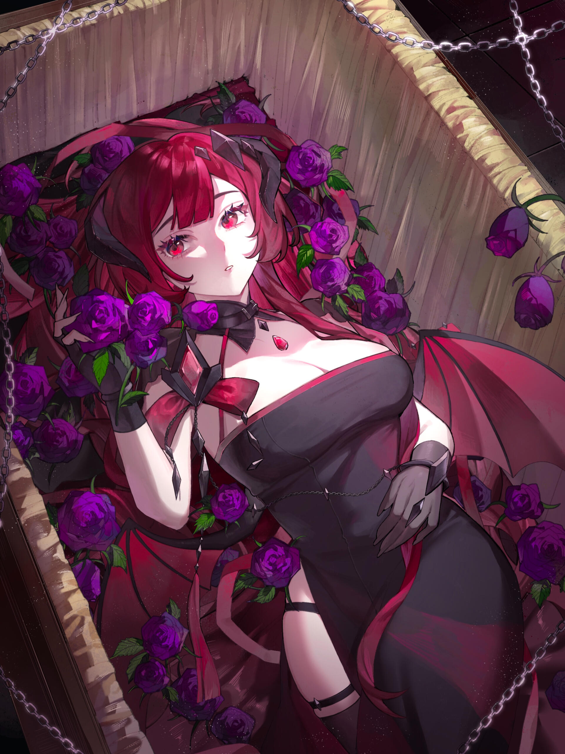In pursuit of a dominion for their craft, and feeling the effects of a long and isolated life, they were led to a vineyard long forsaken by the living: the Château Vino Mortem.This château, dwelling between dimensions, is veiled from mortal eyes. Home to years of torment and experimentation, its soil had turned rotten and volatile. The vines that grow there—both grape and rose—are unlike any found upon Earth or Eden. Their hues are darker than wine and shadow, their fragrance thick with longing. They bloom in stillness, as though awaiting some unspoken grief.Jae set to work reviving the land.
